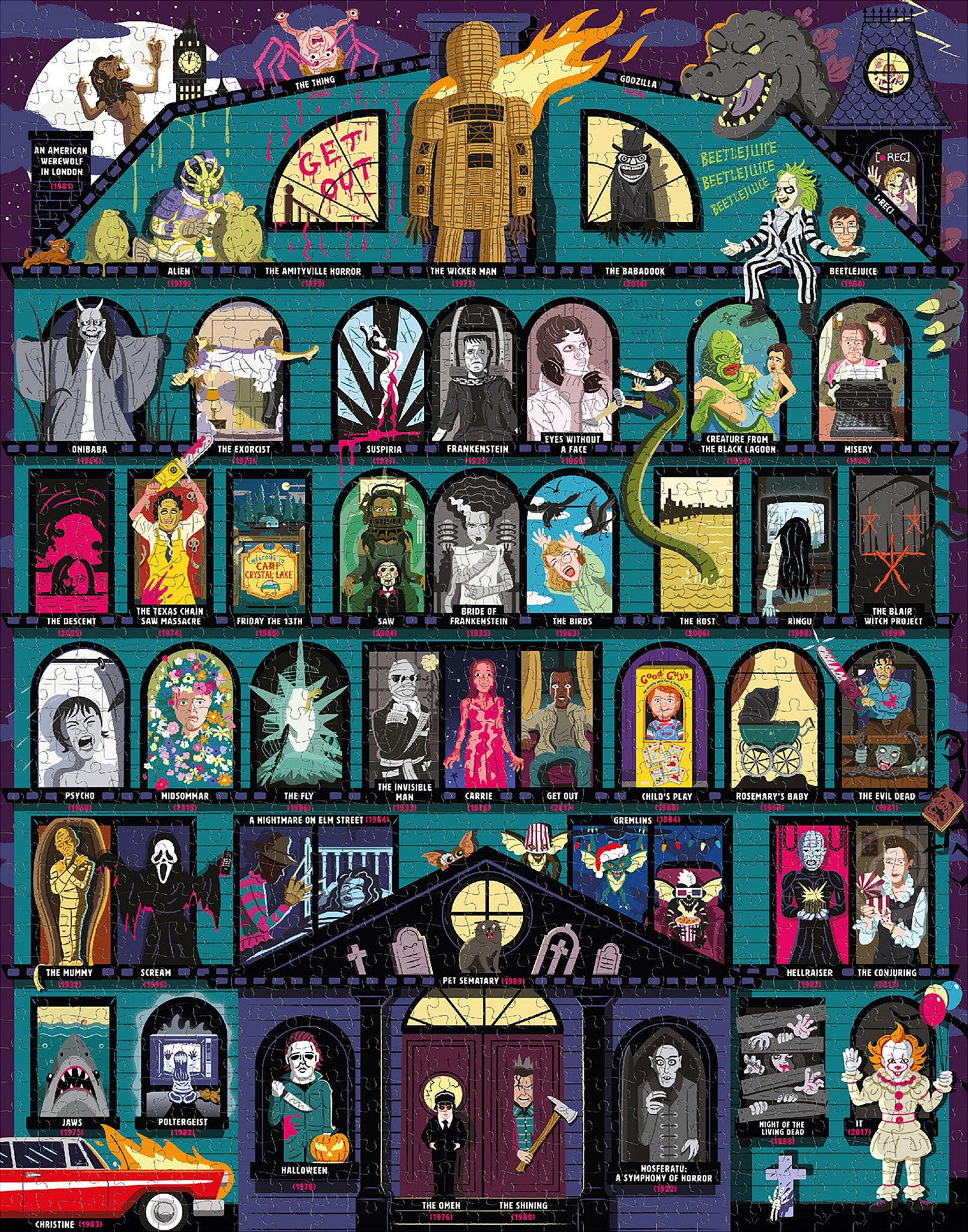 You'll be heading to the video store (or maybe just touching a screen) for a film fix when you finish this one. Connect 1000 pieces to reveal a haunted house of 50 must-watch horrors and thrillers to inspire your next night behind the cushions.